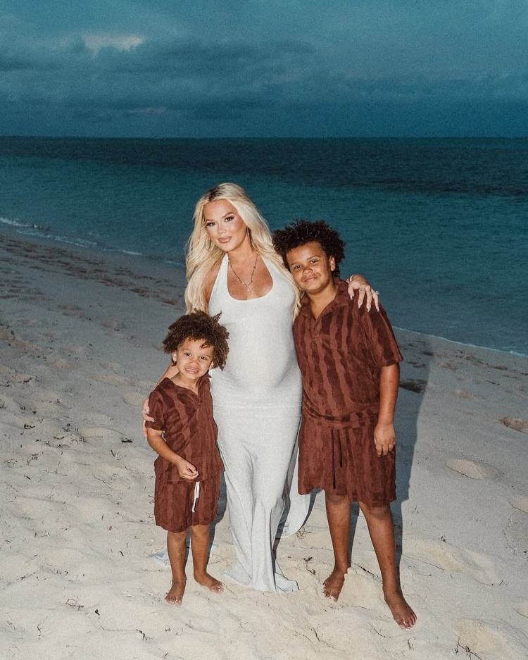 - 特克斯和凯科斯群岛!兰德尔妻子晒和两个儿子的旅行照