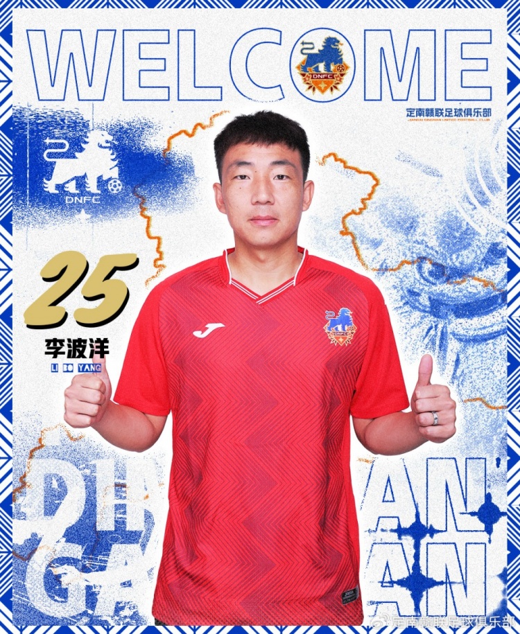 李波洋,1993年1月24日出生,职业生涯开始于陕西全运队,曾效力于内蒙古中优、天津京铁火车头、黑龙江冰城。其中,代表黑龙江冰城征战职业联赛8个赛季,随内蒙古中优、黑龙江冰城两支球队成功冲甲。2025赛季,李波洋将身穿25号球衣为定南赣联效力。