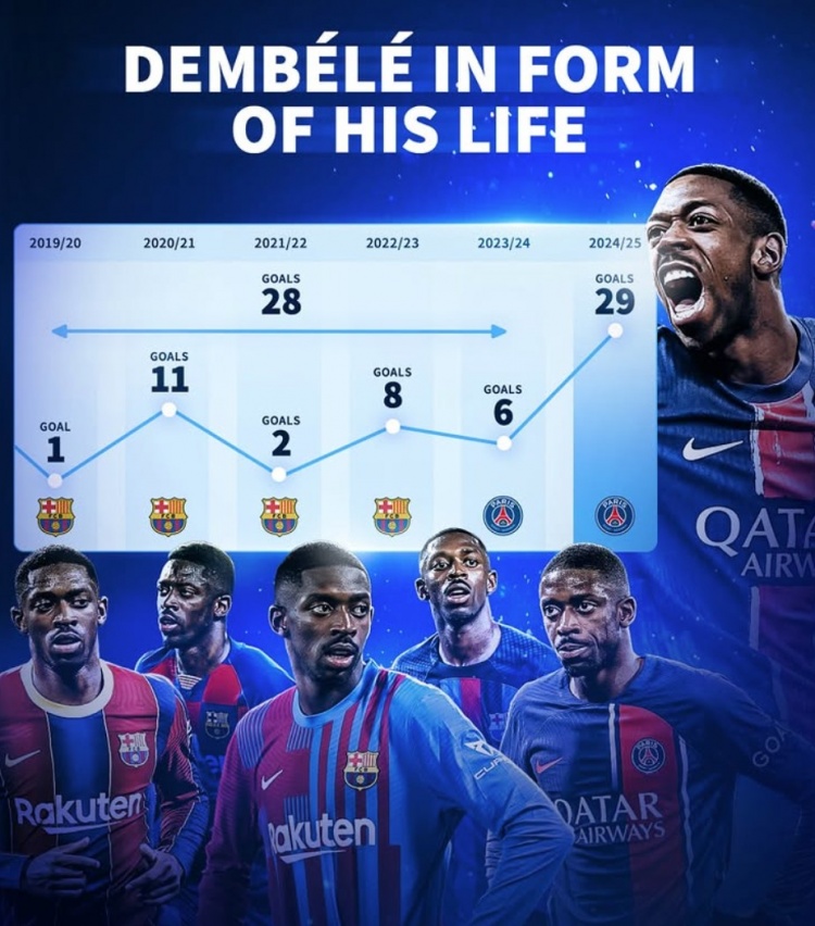 - 真-登球王!登贝莱本赛季狂轰29球,此前为巴萨&巴黎5赛季共28球